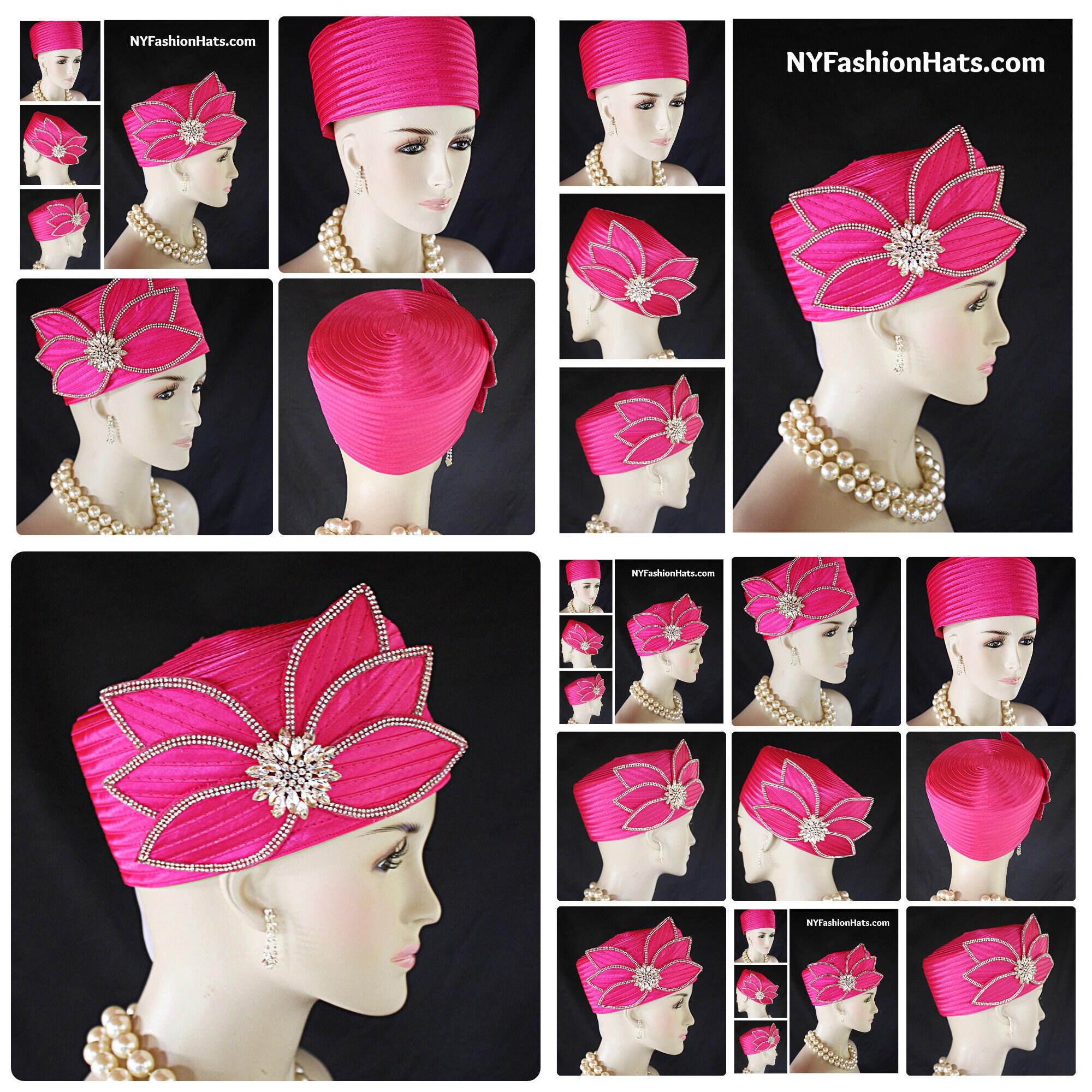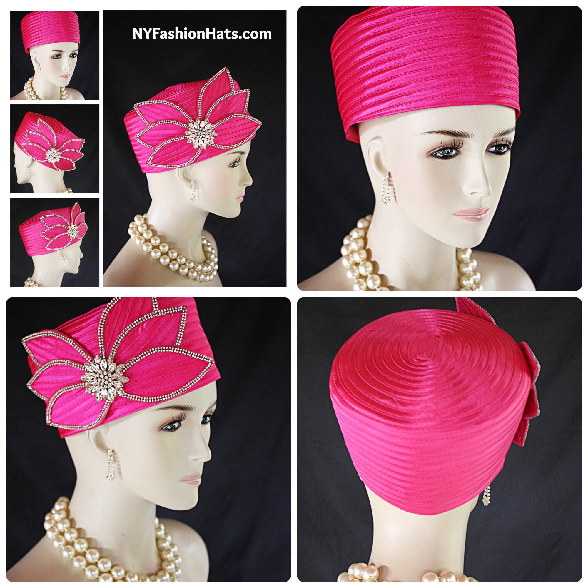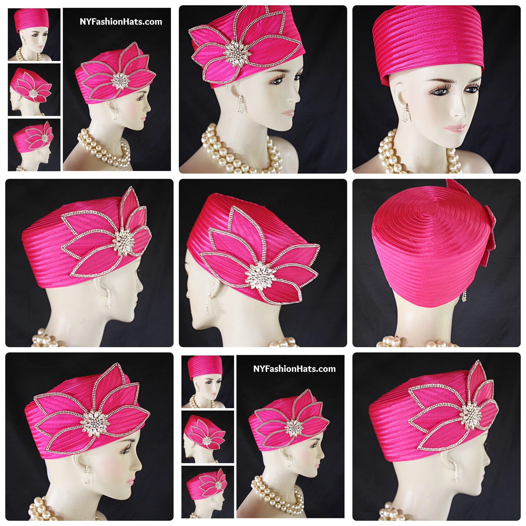 Women's Hot Fuchsia Pink Satin Couture Formal Pillbox Cocktail Wedding Church Hat. This Classic Styled Fuchsia Hot Pink Dressy Pillbox Holiday Hat Is Embellished With A Satin Bow Enhanced With Rhinestones. This Bridal Mother Of The Bride Headpiece Can Be Worn With Embellishments Toward The Face Or To The Back Side Of The Head. This Elegant Satin Pillbox Hat Is Custom Made And Designed By NY Fashion Hats Couture Millinery. https://www.nyfashionhats.com. This New Collection Headpiece Is Part Of The Anastasia Konstandina Couture Headdress Line.